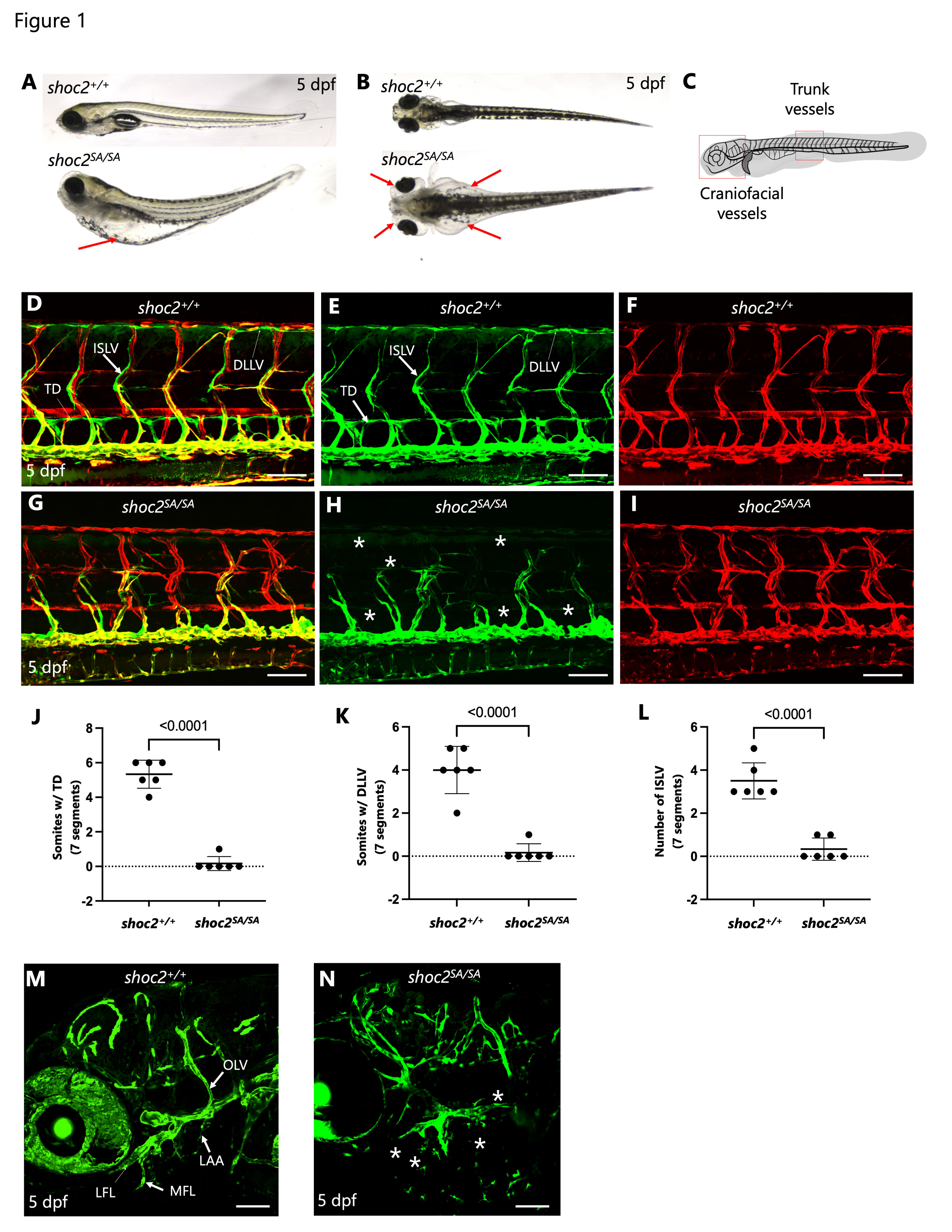 | "Hematopoietic and neural crest defects in zebrafish shoc2 mutants: a novel vertebrate model for Noonan-like syndrome." Jang H, Oakley E, Forbes-Osborne M, Kesler MV, Norcross R, Morris AC, Galperin E. Hum Mol Genet. 2019 Feb 1;28(3):501-514. doi: 10.1093/hmg/ddy366. [ PubMed Link ] | [ Full text ] |